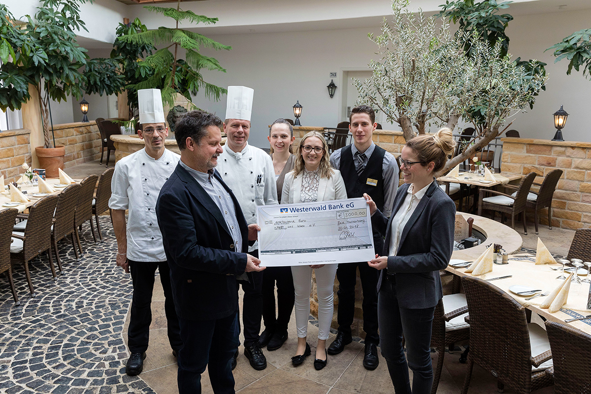 In diesem Jahr kamen so insgesamt 2.045 Euro zusammen, die die HOGANO Hotels auf 3.000 Euro aufgerundet haben. Die Summe kommt diesmal der Initiative HELFT UNS LEBEN der Rhein-Zeitung zugute, ganz konkret der in eine Notlage geratenen Familie Queitsch aus Kleinmaischeid. So werden von HELFT UNS LEBEN unter anderem Spenden für einen dringend benötigten Pkw gesammelt, den die Familie braucht, um die neunjährige Tochter Sophie zu fahren, die an Leukämie leidet und nach einer Hirnblutung gelähmt und blind ist.