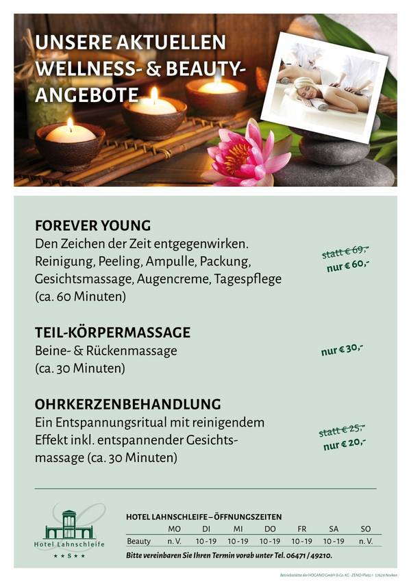 Ausführliche Informationen zu den einzelnen Anwendungen und Massagen finden Sie hier.